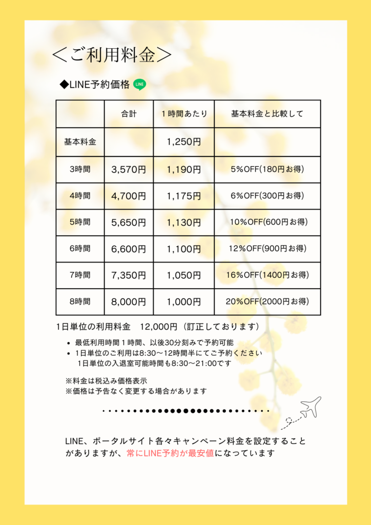 レンタルサロンMIMOSA Cicrle三軒茶屋公式LINEからご予約いただいた場合は特別価格でご利用になれます。